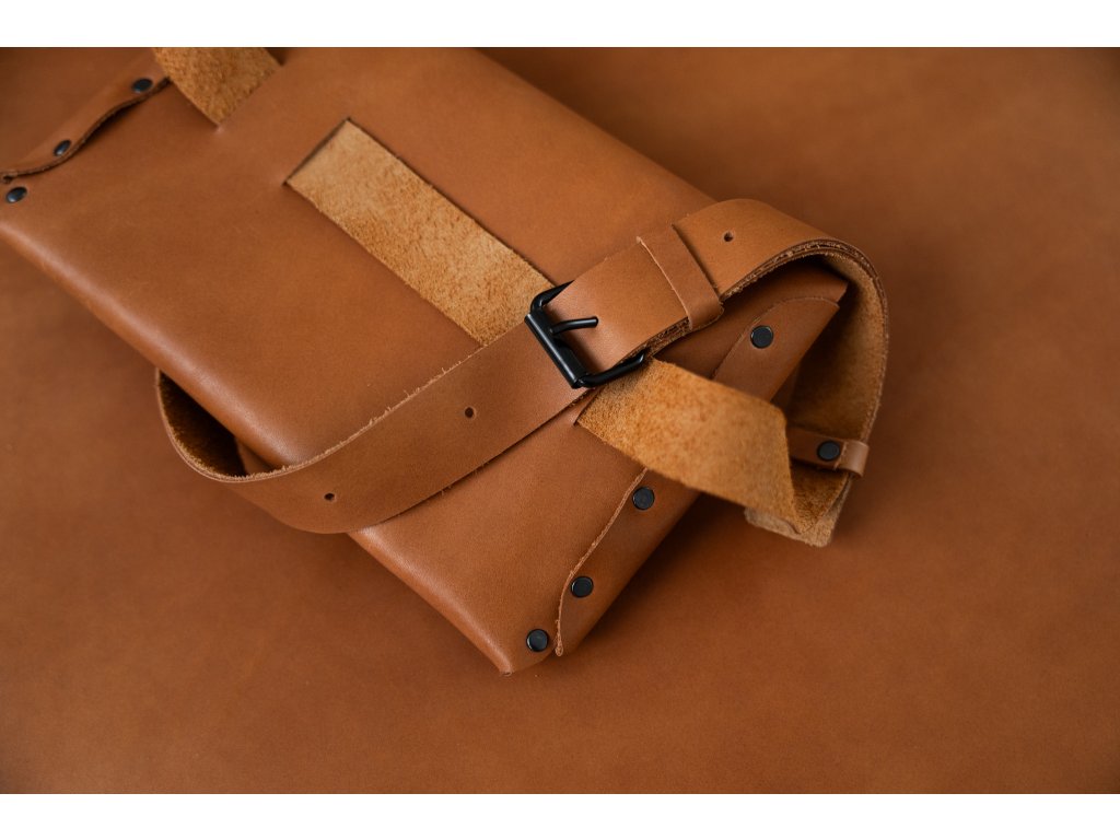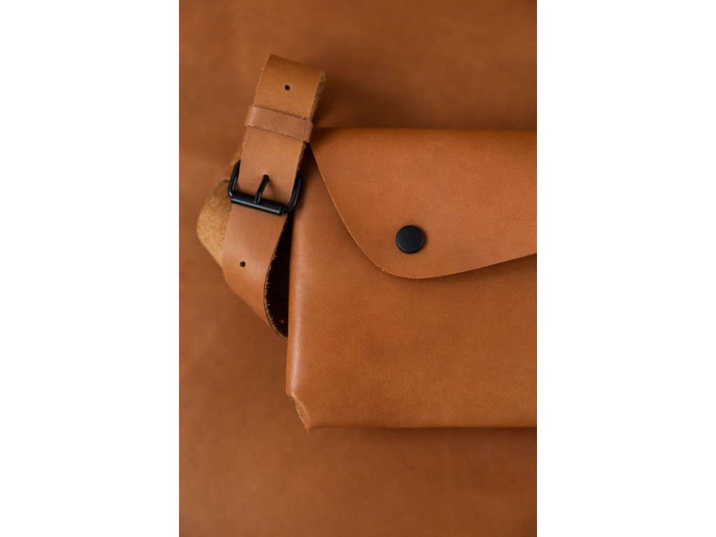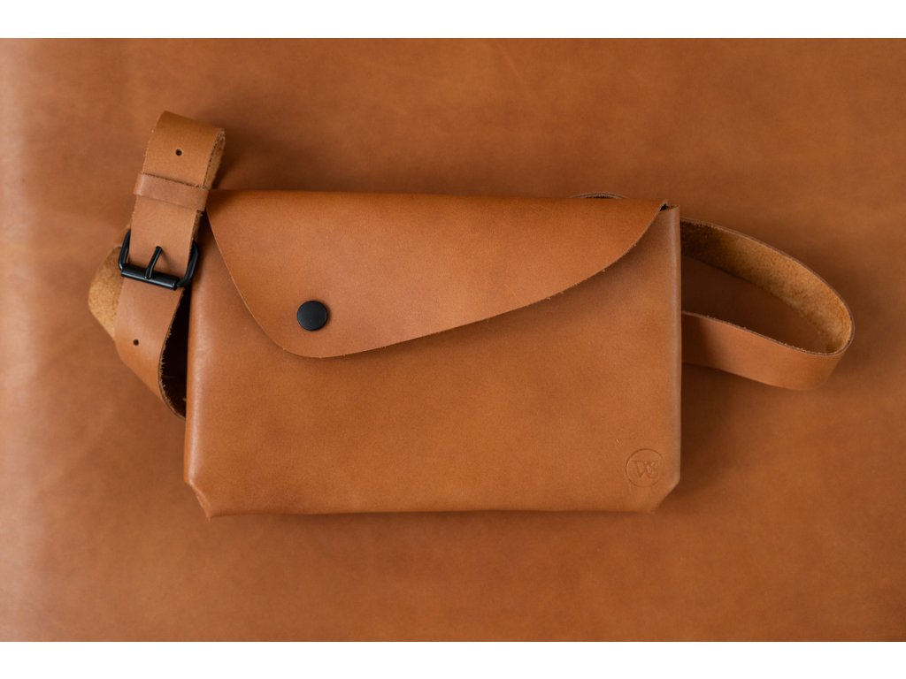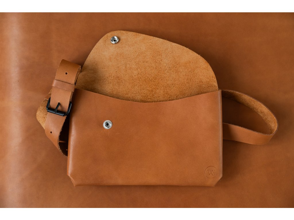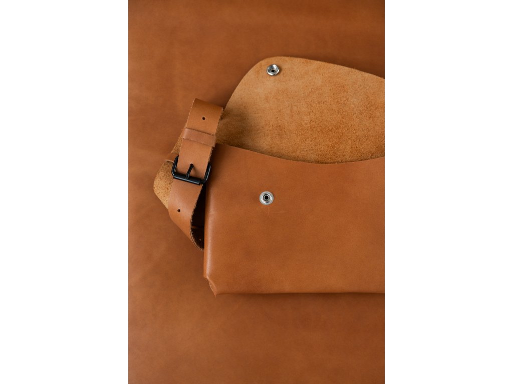 Variabilní nýtovaná ledvinka z kvalitní hovězí usně v osvědčeném tvaru a rozměru. Výrazné nýtování na zadní straně, seříznutá klopa a praktická velikost 24 × 15 cm doplněná možností volby popruhu pro různé způsoby nošení.