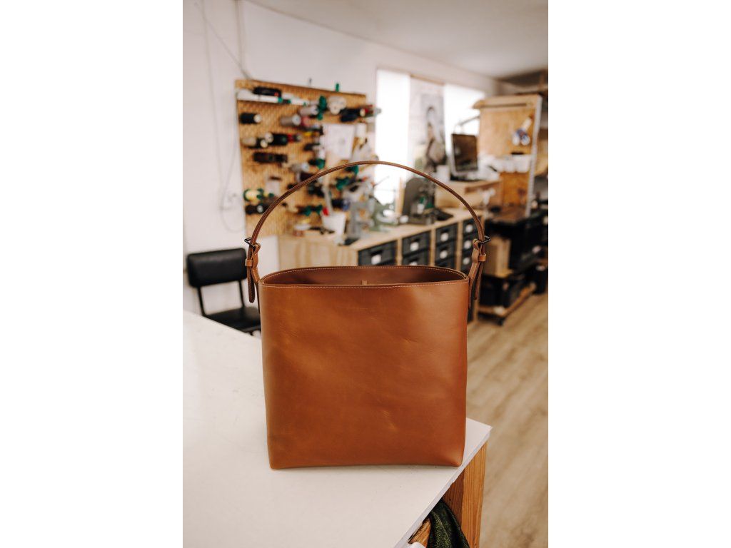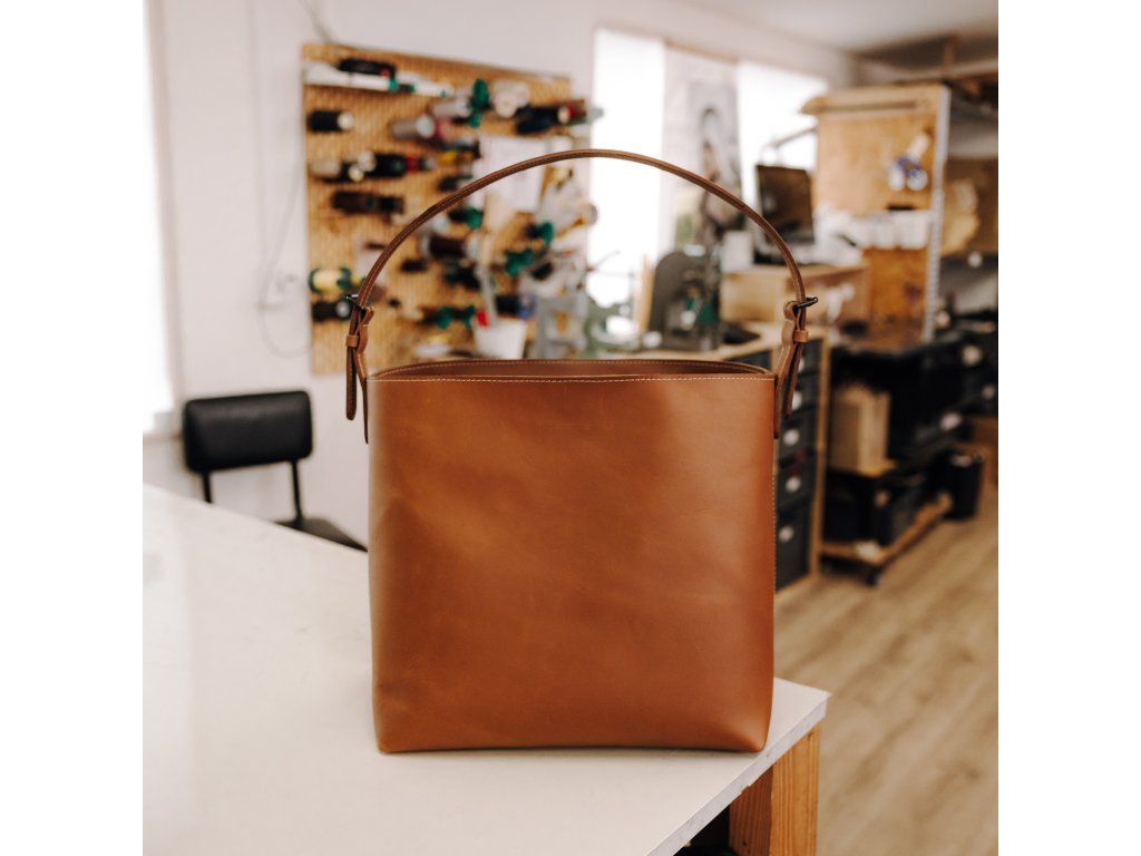 Dámská kabelka Tote Bag ušitá z prvotřídní usně v hnědé barvě. Vyniká svým čistým povrchem a nadčasovým odstínem, který se hodí ke každému outfitu. Díky vyztuženému dnu si zachovává tvar i při plném zatížení, zatímco nastavitelný popruh zajistí pohodlí při každém kroku.