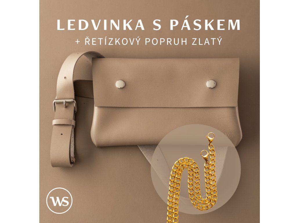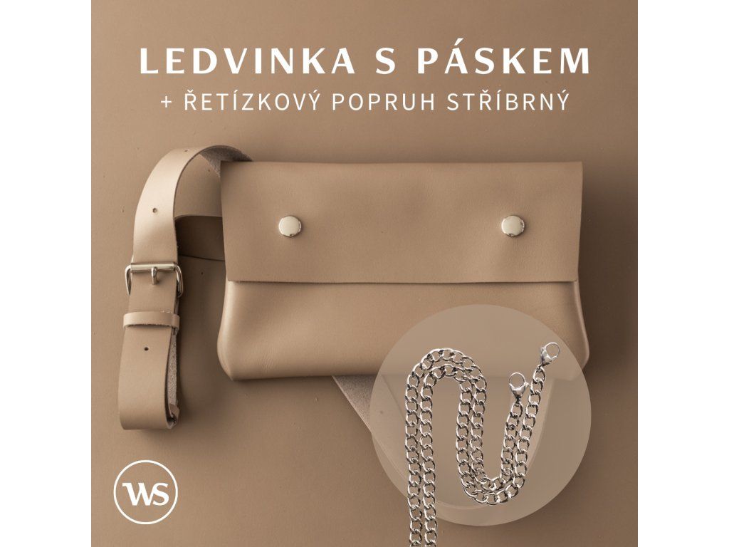 Možnost dokoupení popruhu, který se snadno připne pomocí dvou karabinek zevnitř ledvinky. Vytvoříte tak kabelku přes rameno nebo psaníčko na společenskou událost. Kožený opasek pak můžete využít samostatně, třeba jako pásek k šatům. 👗