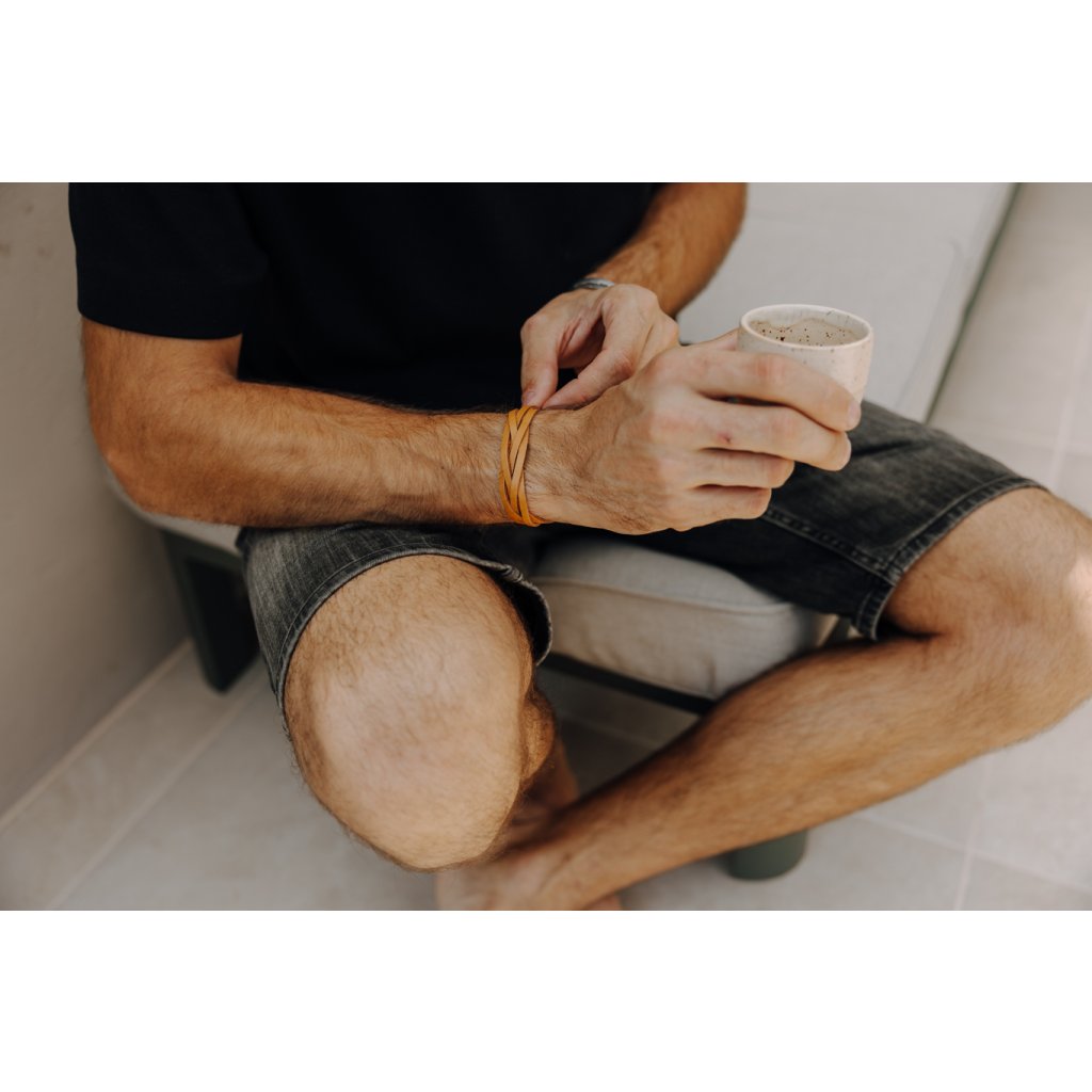 Unisexový náramek je vyroben z kvalitní hovězí usně, což zaručuje jeho trvanlivost a odolnost.