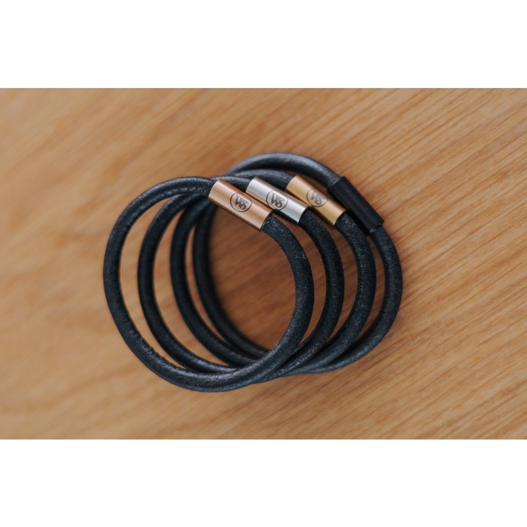 Náramek vyrobený z kulaté kůže o průměru 5mm.