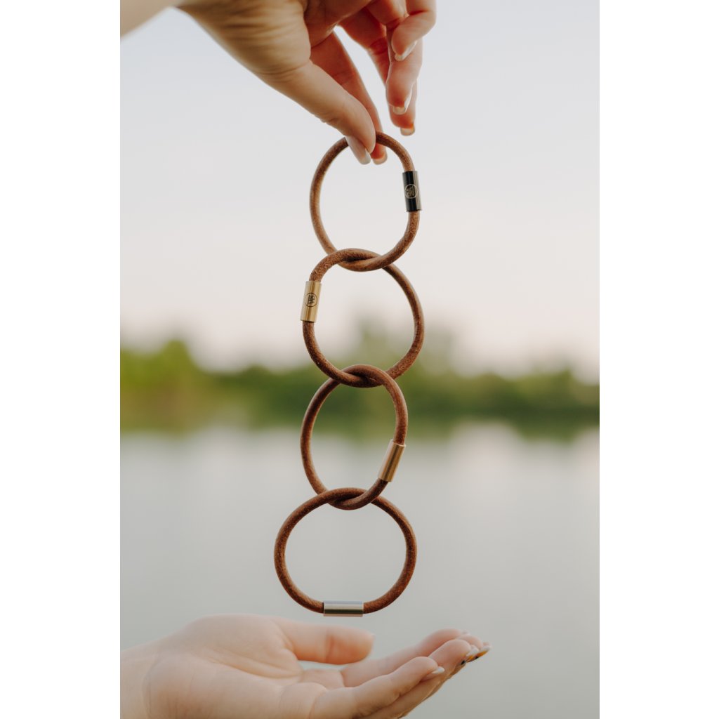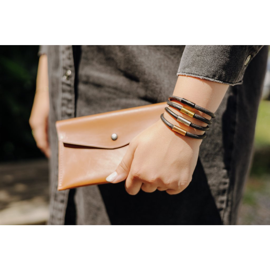 Zajímavost: Tento náramek jsme vyrobili zrecyklováním zbytků kůže, které vznikají při výrobě popruhu na psaníčko.