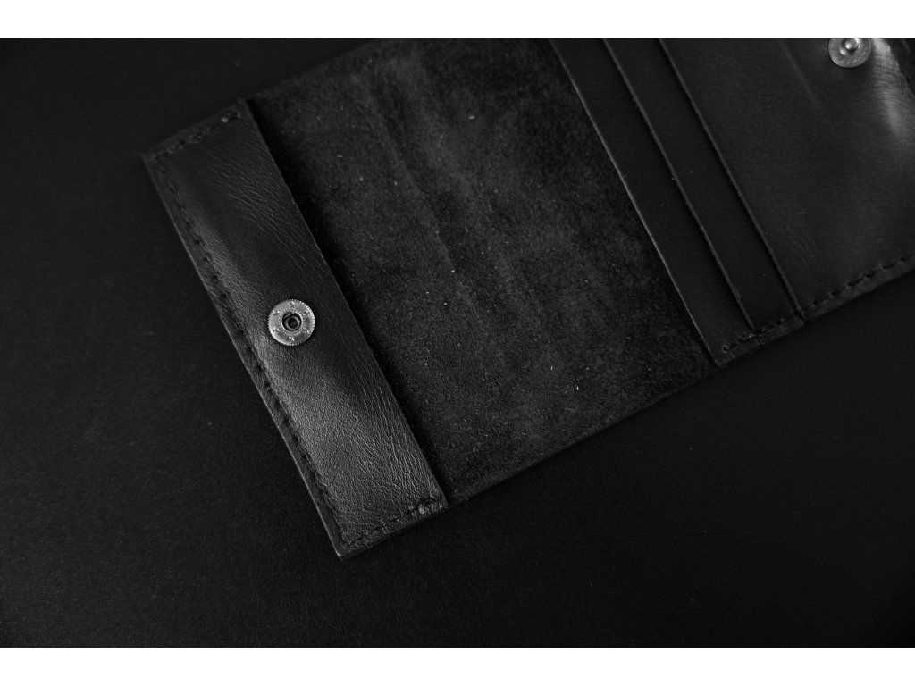 Ručně šité pouzdro s pevným drukem, které bezpečně udrží tvoje karty pod zámkem.