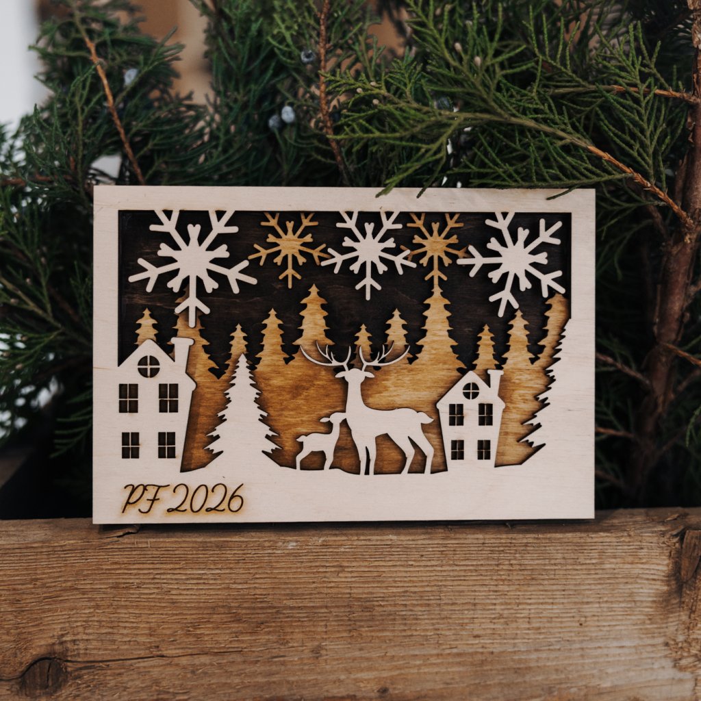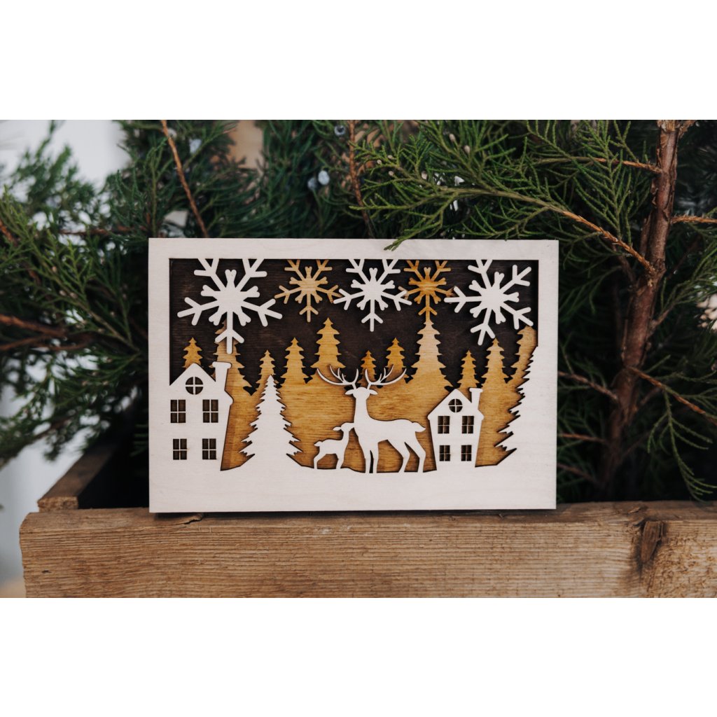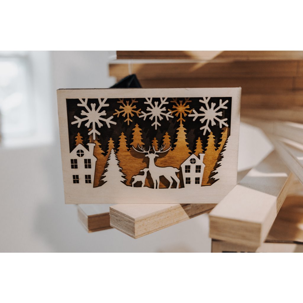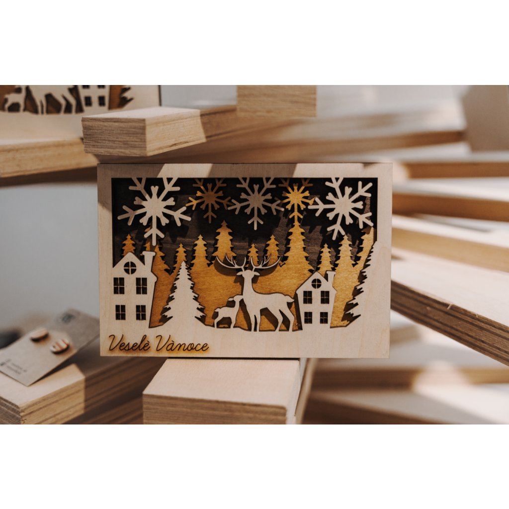 Darujte originální 3D vánoční přání z přírodního dřeva, které spojuje tradici s moderním designem.